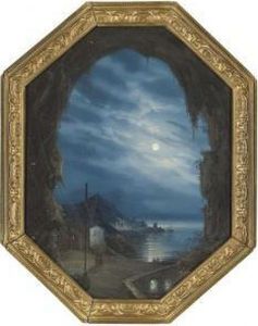 View Of The Blue Grotto, Capri; And A Moonlit View Of Naples Withvesuvius Erupting