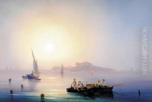 Hauling In The Nets In The Bay Of Naples, Vesuvius Beyond