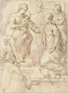 The Mystic Marriage Of St. Catherine, With Two Saints In The Foreground