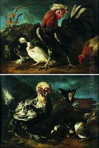Un Gallo E Due Galline (+ Un Gallo, Una Gallina E Due Pulcini; Pair)