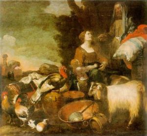 Landscape With Guinea Pigs And Turkey Beside A Pitcher