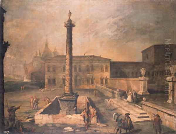 Bring the timeless beauty of (Giovanni Antonio Canal) Canaletto's A capriccio of a piazza in front of a palace with the Column of Marcus Aurelius, pilgrims and townsfolk, a domed church beyond into your home with a handmade oil painting reproduction. Carefully recreated on canvas by skilled artists using traditional techniques, this piece captures the delicate brushwork, subtle light, and vibrant color of the original masterpiece. With museum-level quality and rich texture, it brings elegance and artistic depth to any space. Enjoy free shipping and make this masterpiece a part of your personal collection.