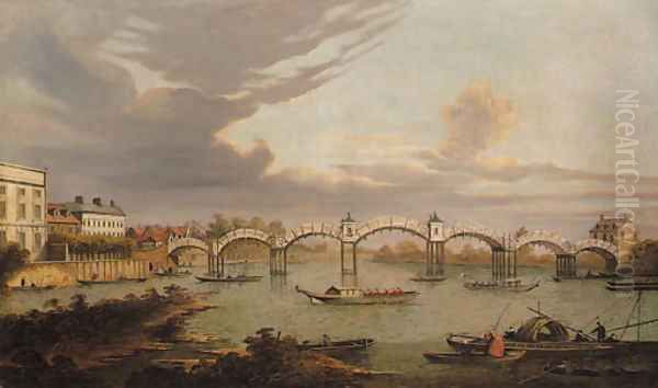 Bring the timeless beauty of (Giovanni Antonio Canal) Canaletto's View of Hampton Court Bridge, with boats on the River Thames and King Henry VIII's Chapel beyond into your home with a handmade oil painting reproduction. Carefully recreated on canvas by skilled artists using traditional techniques, this piece captures the delicate brushwork, subtle light, and vibrant color of the original masterpiece. With museum-level quality and rich texture, it brings elegance and artistic depth to any space. Enjoy free shipping and make this masterpiece a part of your personal collection.