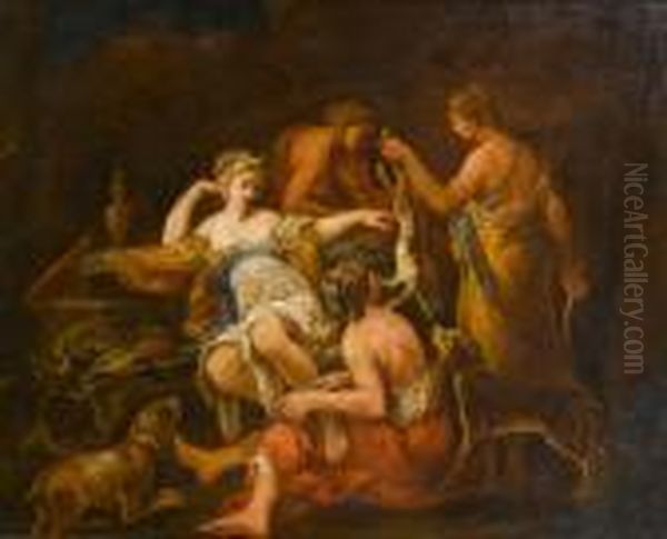 Bring the timeless beauty of Giovanni Antonio Pellegrini's Nymphs Presenting Game To Diana The Huntress into your home with a handmade oil painting reproduction. Carefully recreated on canvas by skilled artists using traditional techniques, this piece captures the delicate brushwork, subtle light, and vibrant color of the original masterpiece. With museum-level quality and rich texture, it brings elegance and artistic depth to any space. Enjoy free shipping and make this masterpiece a part of your personal collection.