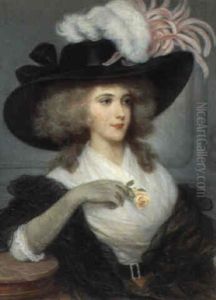 Sketch Of A Lady En Deshabille In A White Chemise And Bluewrap