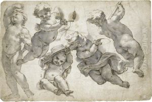 Recto: A Kneeling Bearded Man And A Putto With Armsraised