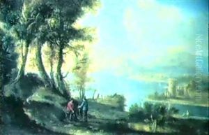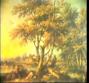 Baumreiche Fluslandschaft Mit Figurenstaffage
