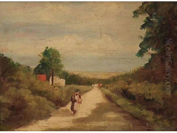 Raffigurante Paesaggio Con Strada E Figura