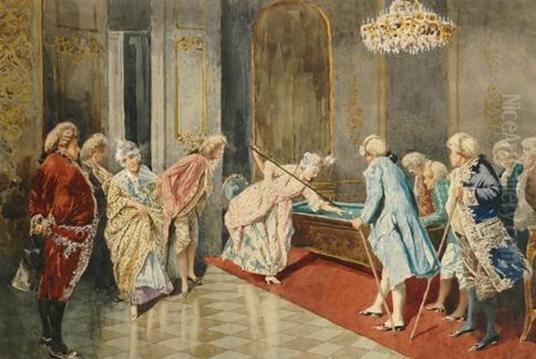 Bring the timeless beauty of Giovanni Battista Filosa's Billiards In The Parlour into your home with a handmade oil painting reproduction. Carefully recreated on canvas by skilled artists using traditional techniques, this piece captures the delicate brushwork, subtle light, and vibrant color of the original masterpiece. With museum-level quality and rich texture, it brings elegance and artistic depth to any space. Enjoy free shipping and make this masterpiece a part of your personal collection.