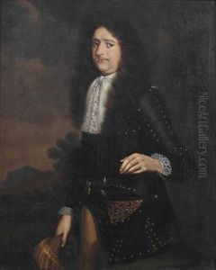 Portrait Of A Gentleman, Three-quarter Length Standing, Wearing Armour And A Ruff, A Red Ribbon Tied To His Left Arm