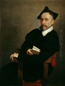Portrait Of A Scholar, Seated Half-length, In Black Costume, Holding A Book