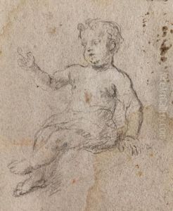 Studie Eines Sitzenden Putto Mit Lendentuch Und Erhobener Rechter Hand