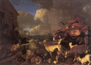 Peasants With A Herd Of Cattle, Goats And Sheep