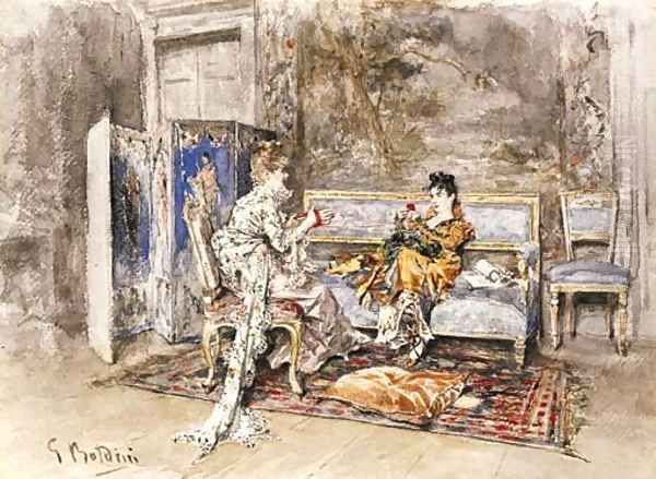 Bring the timeless beauty of Giovanni Boldini's La Conversazione into your home with a handmade oil painting reproduction. Carefully recreated on canvas by skilled artists using traditional techniques, this piece captures the delicate brushwork, subtle light, and vibrant color of the original masterpiece. With museum-level quality and rich texture, it brings elegance and artistic depth to any space. Enjoy free shipping and make this masterpiece a part of your personal collection.
