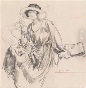 Portrait Einer Frau (l'americana) (+ Studie Zu Einer Nackten, Nur Mit Strumpfen Bekleideten Tanzenden (study), Verso)