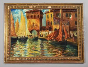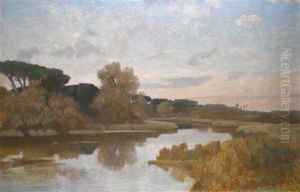 Paesaggio Fluviale Con Scorcio Di Paese