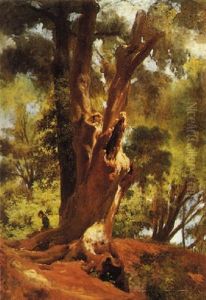 Two Studies Of Trees, One With A Figure