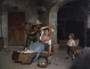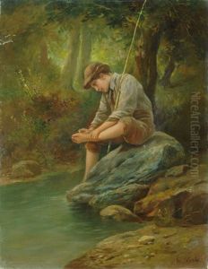 An Italian Lake View With Fisherwoman