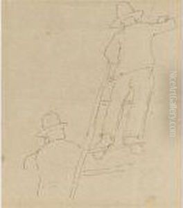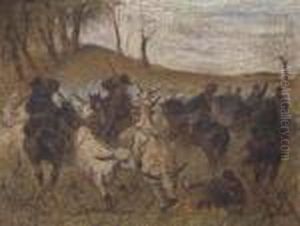 Studio Di Militari E Contadina Con Casa E Alberi, (1890)