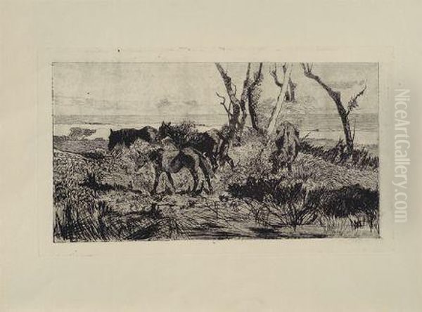 Pascolo Di Cavalli Oil Painting by Giovanni Fattori