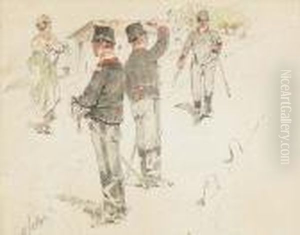 Studio Di Militari E Contadina Con Casa E Alberi, (1890)