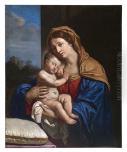 Capucin Monk Adoring The Christ Child, Four Cherubim Above