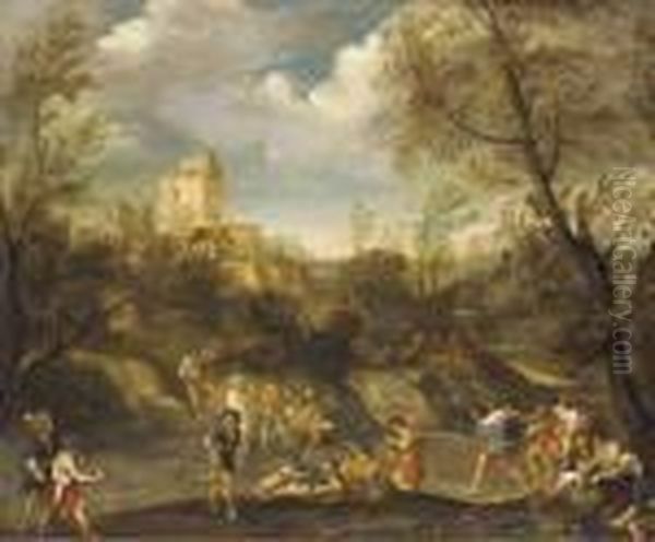 A Wooded Landscape With Figures Making Merry