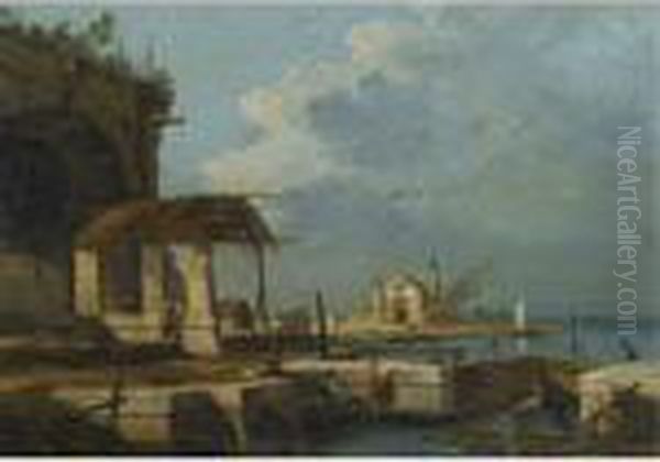 A Capriccio Of The Venetian Laguna With A Church In The Distance