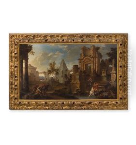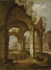 Travellers In A Landscape With Classical Ruins