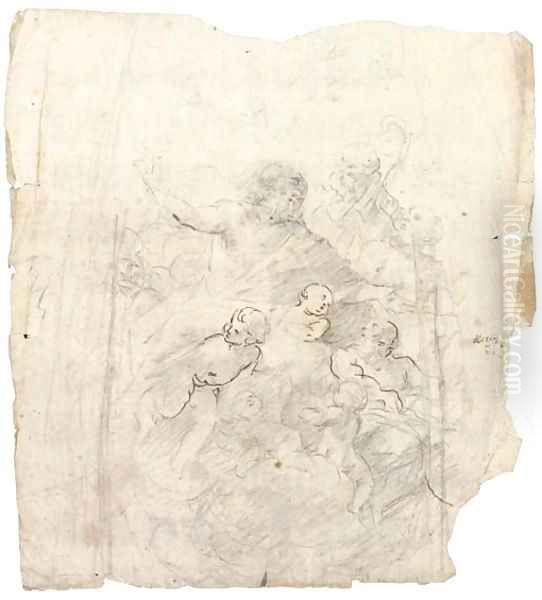 The apotheosis of a bearded prophet attended by a bishop and another figure Design for a section from a dome