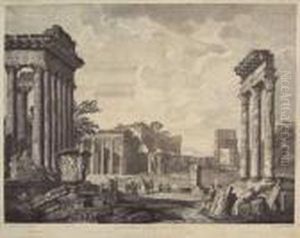 Vue Ideale De Ruines Romaines, Avec Le Temple De Janus Quadrifronte Et L'hercule Farnese, Animees De Personnages