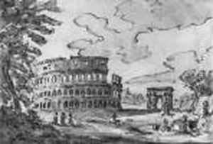 Capriccio De Ruines Romaines Avec Le Colisee, La Pyramide De Caius Cestius Et Le Temple De Vesta