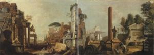 Ein Paar Ruinencapriccios Mit Figurlicher Staffage