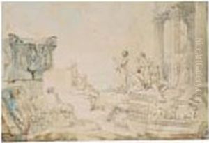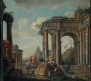 An Architectural Capriccio Of Roman Ruins And Four Archeologists; An Architectural Capriccio Of Roman Ruins And An Apostle Preaching