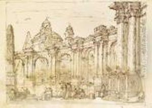 Capriccio Con Figure E Rovine Romane
