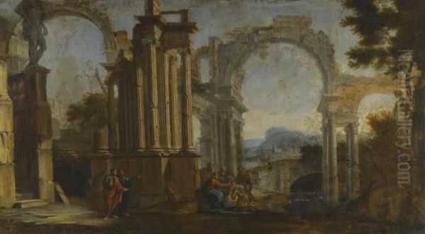 A Fluvial Architectural Capriccio With Christ Healing The Blind Man