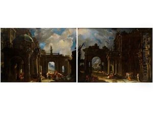 A Capriccio Of Architectural Ruins, With Classical Figures Before A Philosopher Preaching; A Capriccio Of Classical Ruins With Figures (pair)