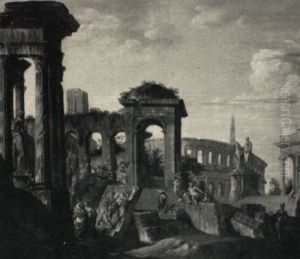 Capriccio With Figures At The Roman Ruins And The Arch Of Constantine