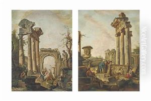 A Capriccio Of Architectural Ruins, With Classical Figures Before A Philosopher Preaching; A Capriccio Of Classical Ruins With Figures (pair)