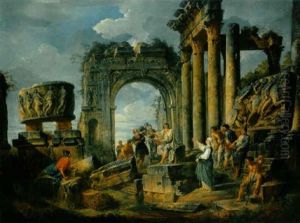 Capriccio Architettonico Di Rovine Romane Con Figure