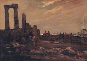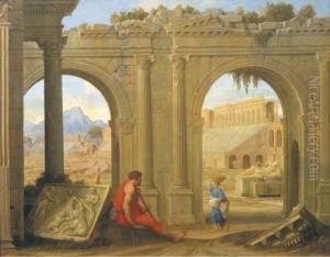 A Capriccio Of Roman Ruins With Villagers And A Statue Of Apollo