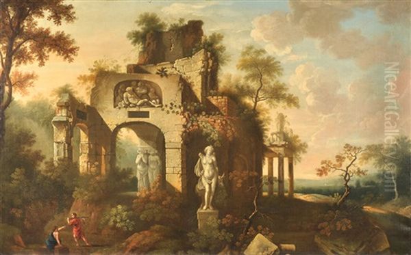 Paisaje Con Ruinas Y Personajes