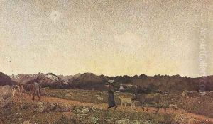 Peasants ploughing a field in the north of Italy, illustration from the magazine Allemand Jugend. 1879