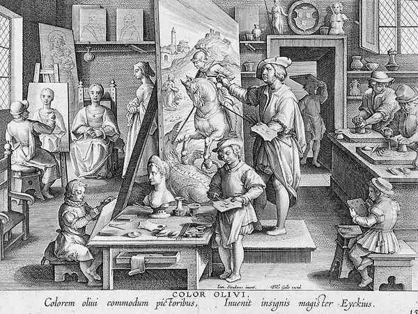 The Invention of Oil Paint, plate 15 from Nova Reperta New Discoveries engraved by Philip Galle 1537-1612 c.1600