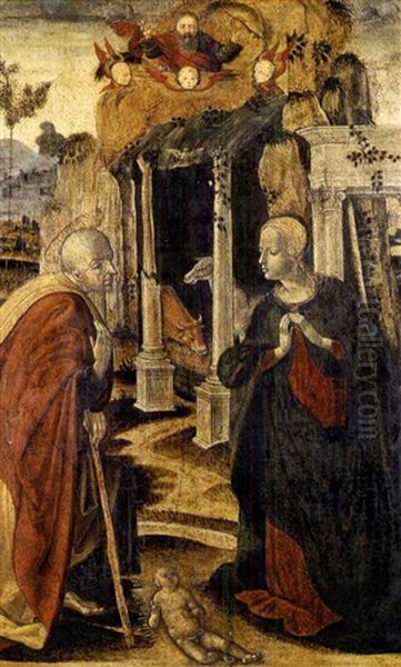 Bring the timeless beauty of Girolamo di Benvenuto del Guasta's The Nativity, With God The Father Above into your home with a handmade oil painting reproduction. Carefully recreated on canvas by skilled artists using traditional techniques, this piece captures the delicate brushwork, subtle light, and vibrant color of the original masterpiece. With museum-level quality and rich texture, it brings elegance and artistic depth to any space. Enjoy free shipping and make this masterpiece a part of your personal collection.