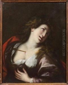 The Head Of A Female Saint In A Carved And Gilt Wood Frame