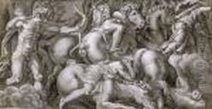 Scene showing that those born under the sign of Leo in conjunction with the constellation of the Dog Star will face wild animals without fear, symbolised by the scene of a struggle between men and beasts, from the Camera dei Venti, 1528