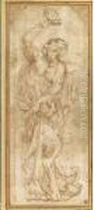 Black Chalk, Pen And Brown Ink On Light Brown Paper