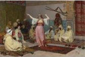 Giulio Rosati was an Italian painter, known primarily for his Orientalist works, depicting scenes from North Africa and the Middle East. Born in Rome, Italy, in 1858, Rosati received his artistic training at the prestigious Accademia di San Luca in Rome, where he was influenced by the academic style of painting that was prevalent at the time. He was particularly inspired by the works of Mariano Fortuny, a Spanish Orientalist painter who was known for his vibrant colors and intricate details in scenes of exotic locales.