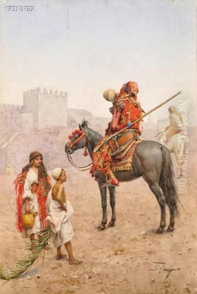 Bring the timeless beauty of Giulio Rosati's Arab Horseman Pausing To Quench His Thirst into your home with a handmade oil painting reproduction. Carefully recreated on canvas by skilled artists using traditional techniques, this piece captures the delicate brushwork, subtle light, and vibrant color of the original masterpiece. With museum-level quality and rich texture, it brings elegance and artistic depth to any space. Enjoy free shipping and make this masterpiece a part of your personal collection.